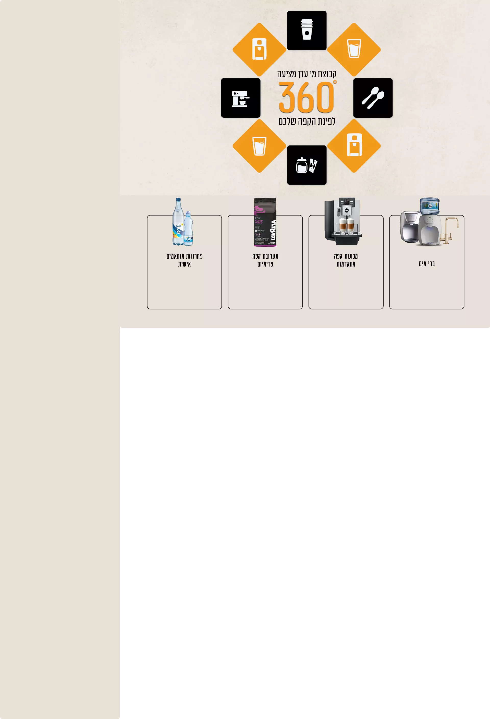 קפה הוא יותר ממשקה, הוא רגע של חיבור ופינוק. לכן אנו מציעים מכונות יוקרתיות מהמותגים המובילים בעולם, שיכינו לכם קפה שלא תשכחו.
